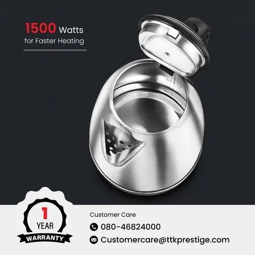 Prepare hot water, instant tea etc, in a matter of minutes with Prestige Electric Kettle. With smart features like automatic cut-off, single touch lid locking, beautifully designed ergonomic handle, elegant body and much more, this glamorously designed electric kettle is a must have accessory for the modern kitchen.